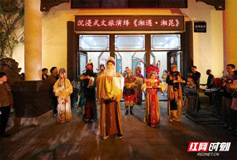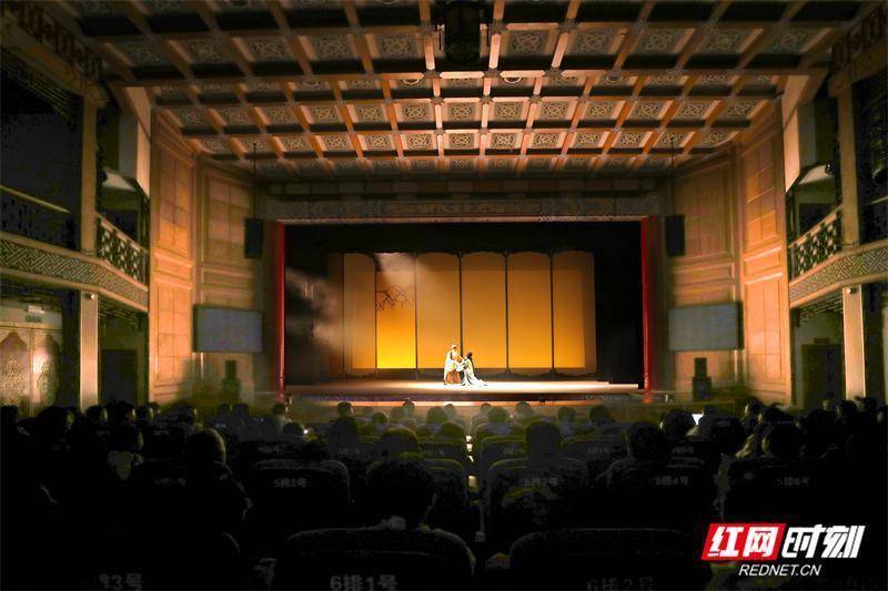 作为湘昆传承与创新的精品力作,《湘遇·湘昆》不仅保留了《牡丹亭・游园》《南柯记·瑶台》《紫钗记・折柳》等经典片段的原汁原味,更以多媒体视觉技术与沉浸式演出形式,实现了传统戏曲语汇的当代转译。演出前,演员在剧院门口与观众零距离互动,生动诠释非遗的“活态”传承;演出中,“火判”吐焰、“矮子功”“凳子功”等绝技与现代舞美交相辉映,体现出湘昆在守正创新中的艺术活力。
